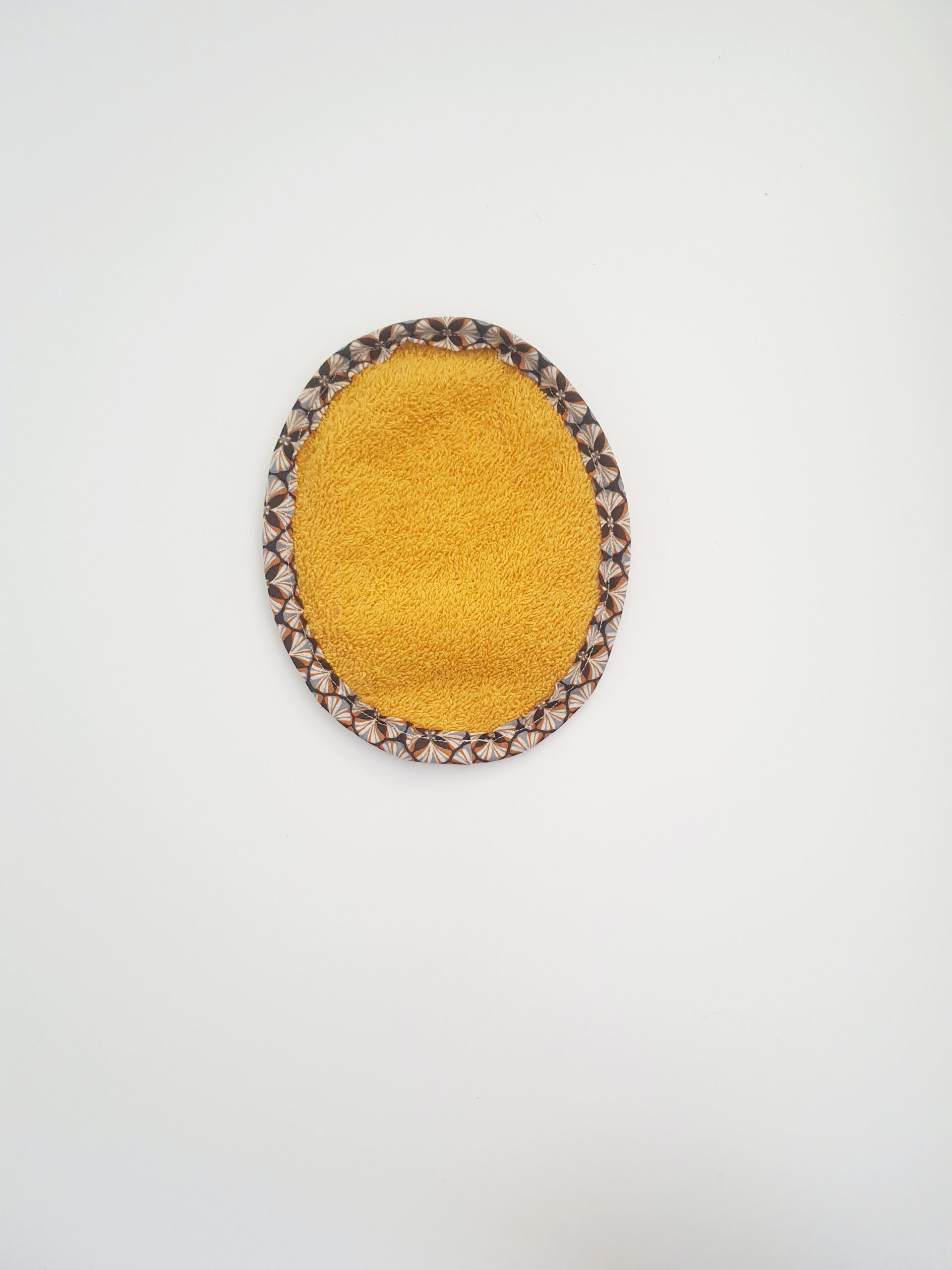 Matières: Tissu éponge jaune moutarde Oeko-Tex / tissu coton beige et marron Oeko-Tex