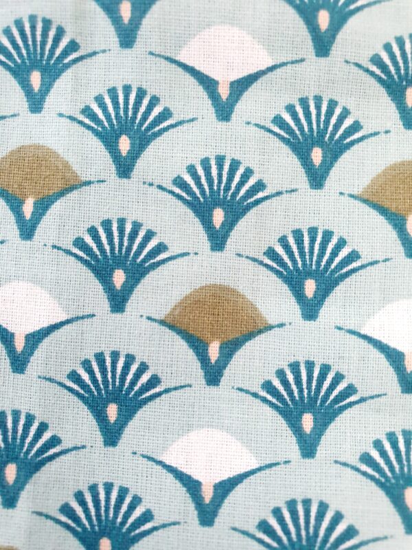 Lot de 6 lingettes lavables réutilisables motifs éventails bleu fond vert amande en coton Oeko Tex. Très douces grâce à leurs côtés en éponge bambou, elles conviennent aux peaux les plus délicates.
