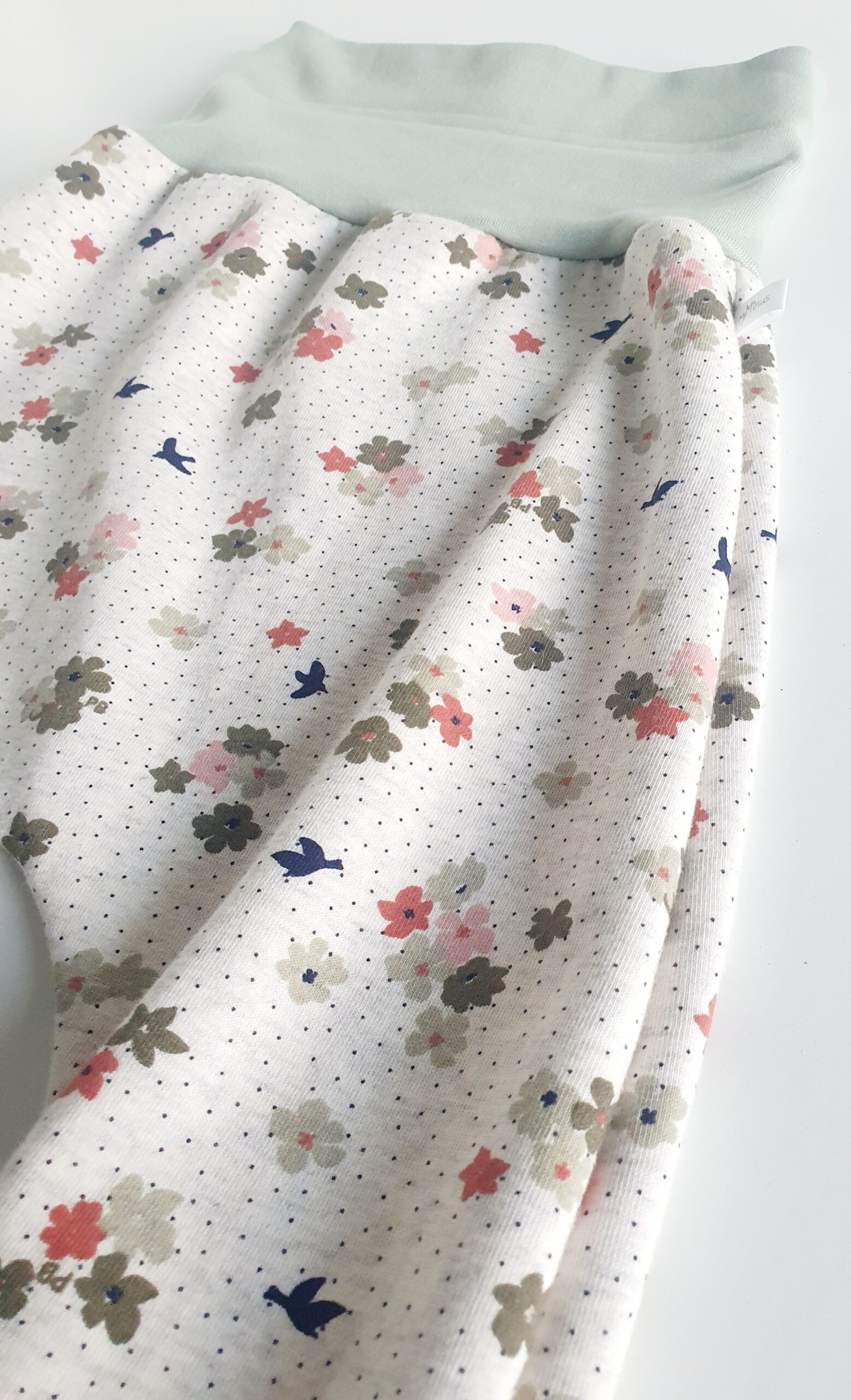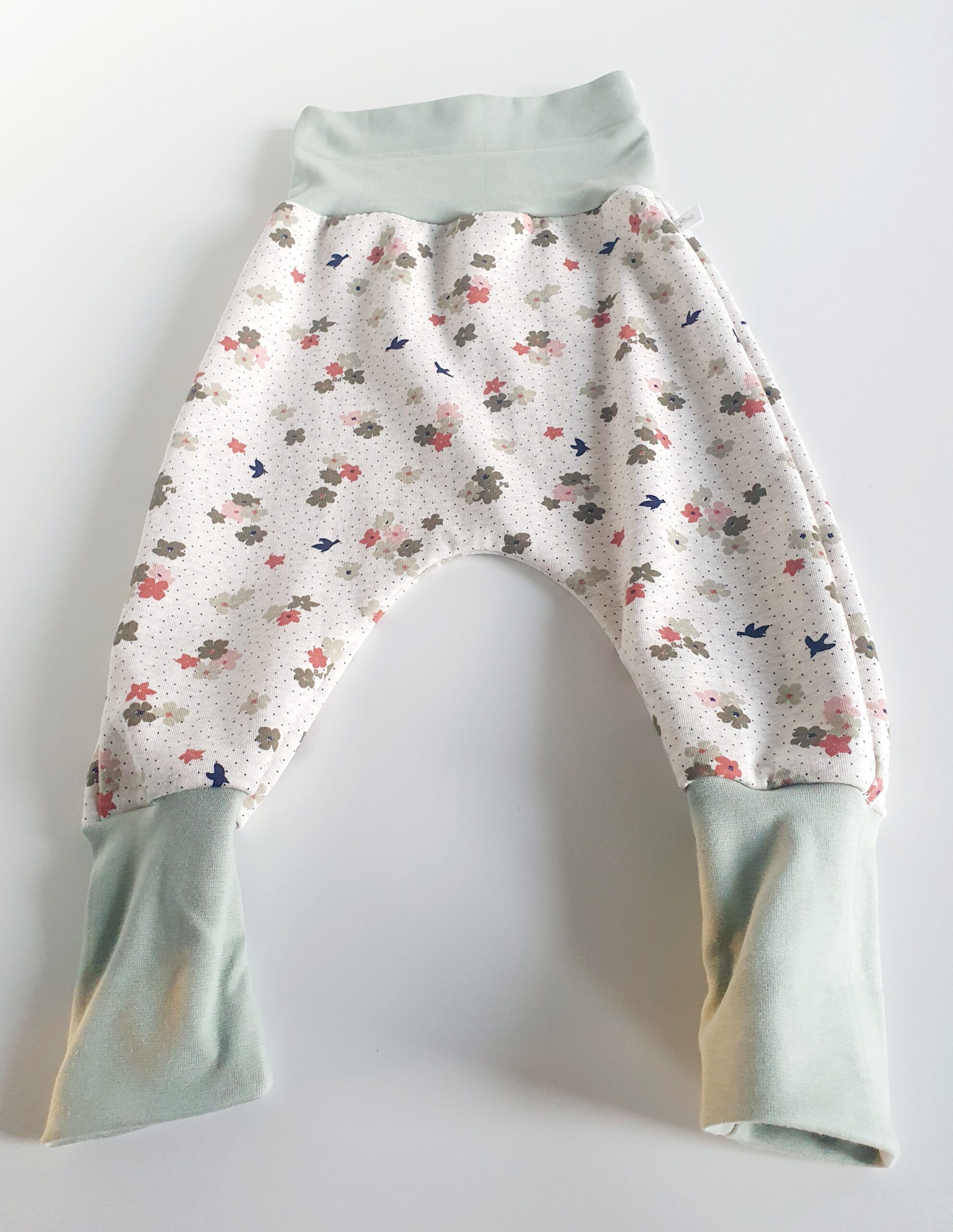 Sarouel 18 mois avec jolis motifs fleuris et petits oiseaux. Il est évolutif, résistant et très confortable, il permet une grande liberté de mouvement. Tendance, il s’enfile en un clin d’œil. Déplier la taille et les chevilles et le pantalon grandit en même temps que votre bébé ! Le sarouel évolutif rime avec économies et mode éco-responsable.