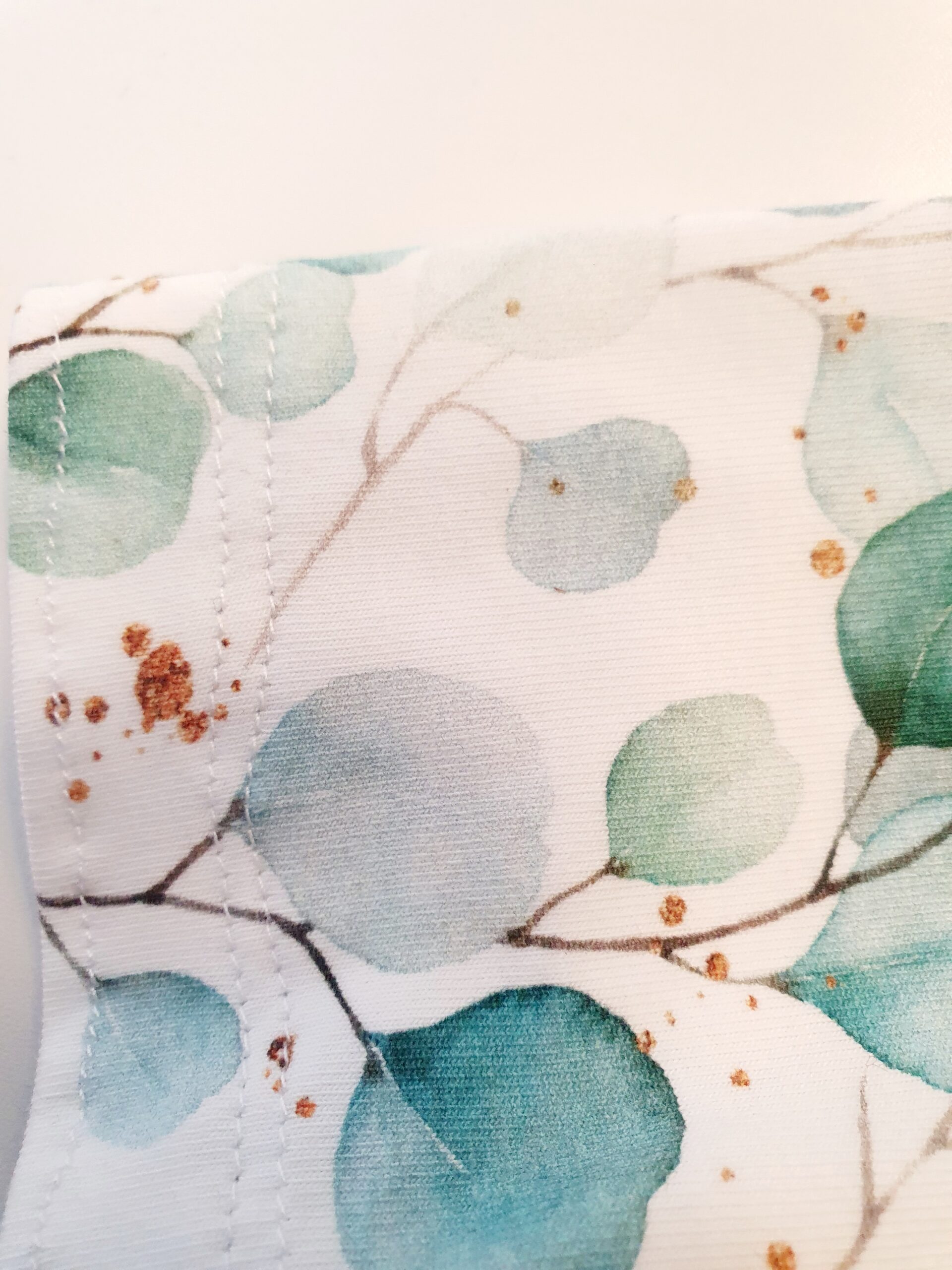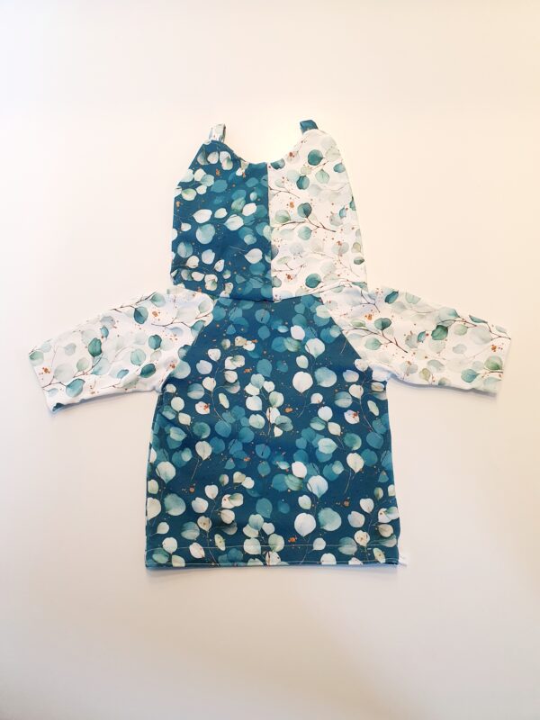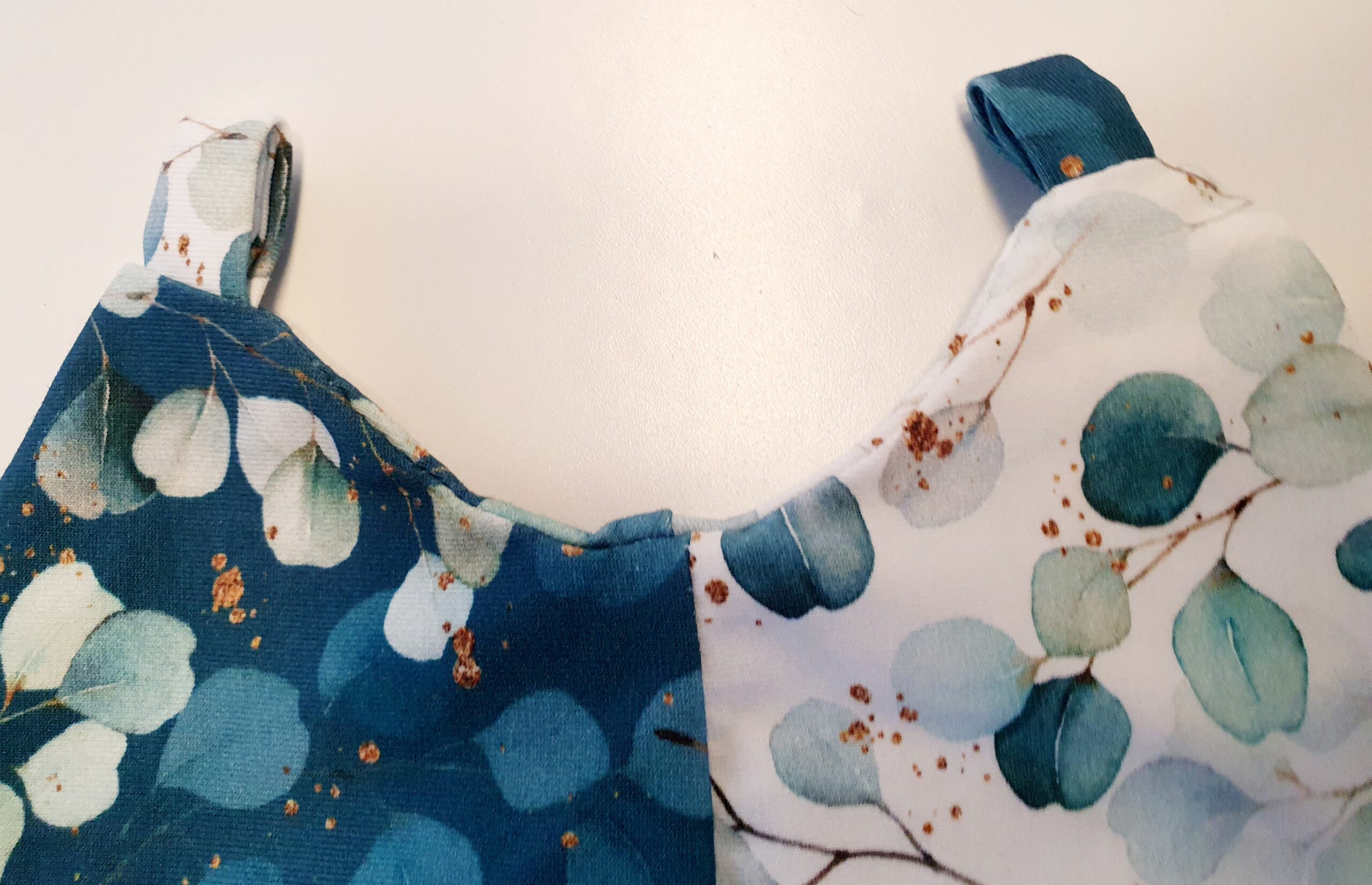 Matières : Jersey léger fond blanc eucalyptus Oeko -Tex/ Jersey léger fond bleu canard eucalyptus Oeko -Tex / Etiquette My Minus en satin